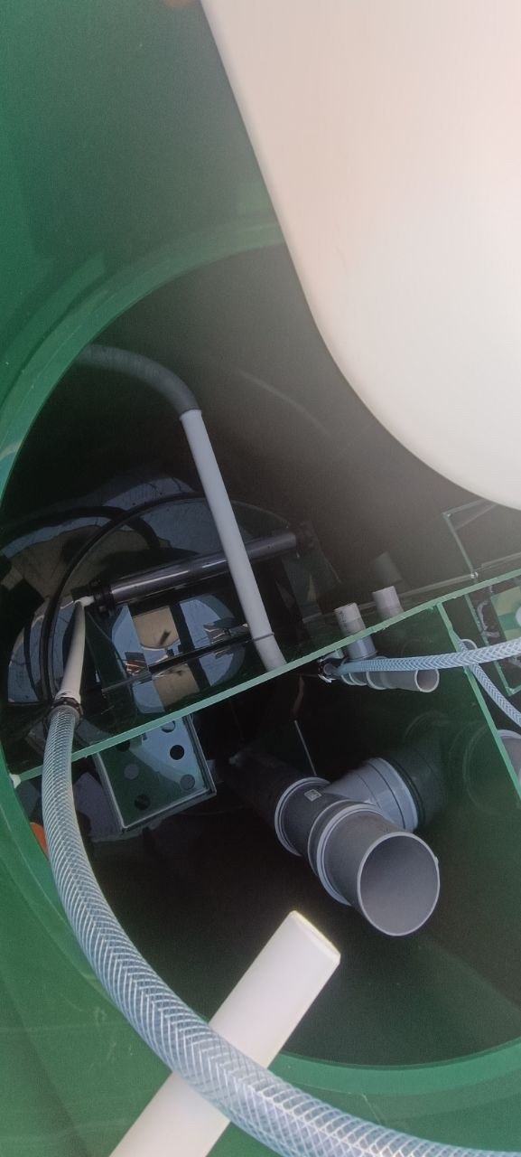 Принцип работы такого септика основан на использовании анаэробных бактерий. Подача кислорода происходит с помощью воздушного компрессора, вынесенного в отдельный отсек, что исключает риск затопления электрического оборудования.
